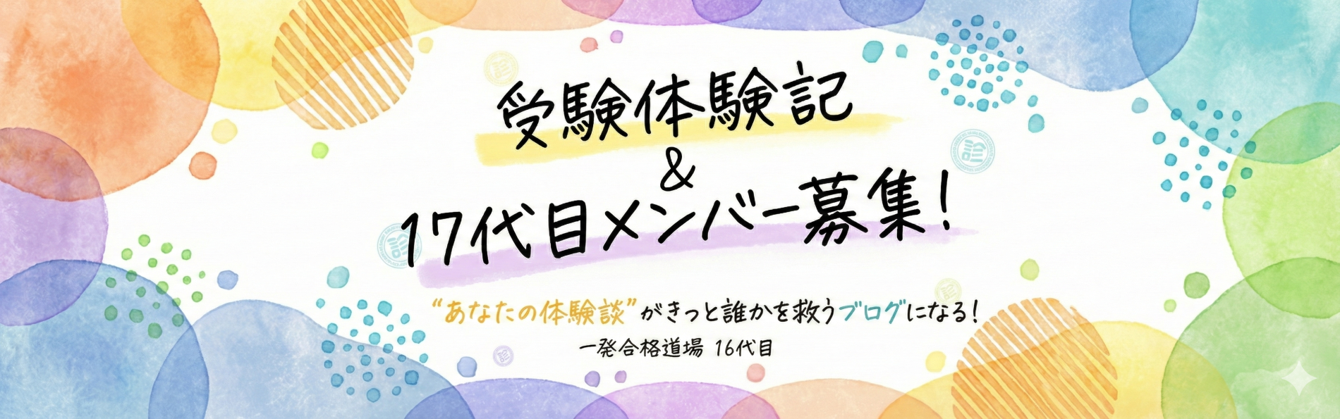 2026/01/14 / 最終更新日 : 2026/01/14 tomi 合格体験記・未合格体験記 【号外】合格・未合格体験記募集のお知らせ by 16 代目一同 合格・未合格体験記募集のお知らせです!皆様の体験談を是非お聞かせください!