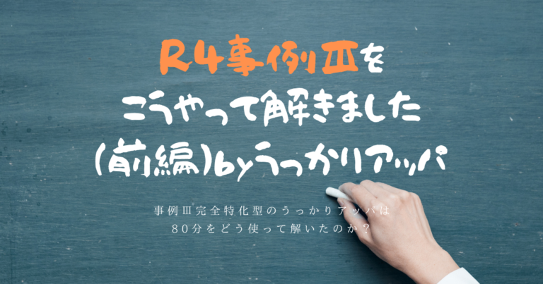 事例Ⅲ完全特化型で当日もホームランを打ったうっかりアッパが、R4事例Ⅲをどうやって解いたかを紹介する前後編の前編です。