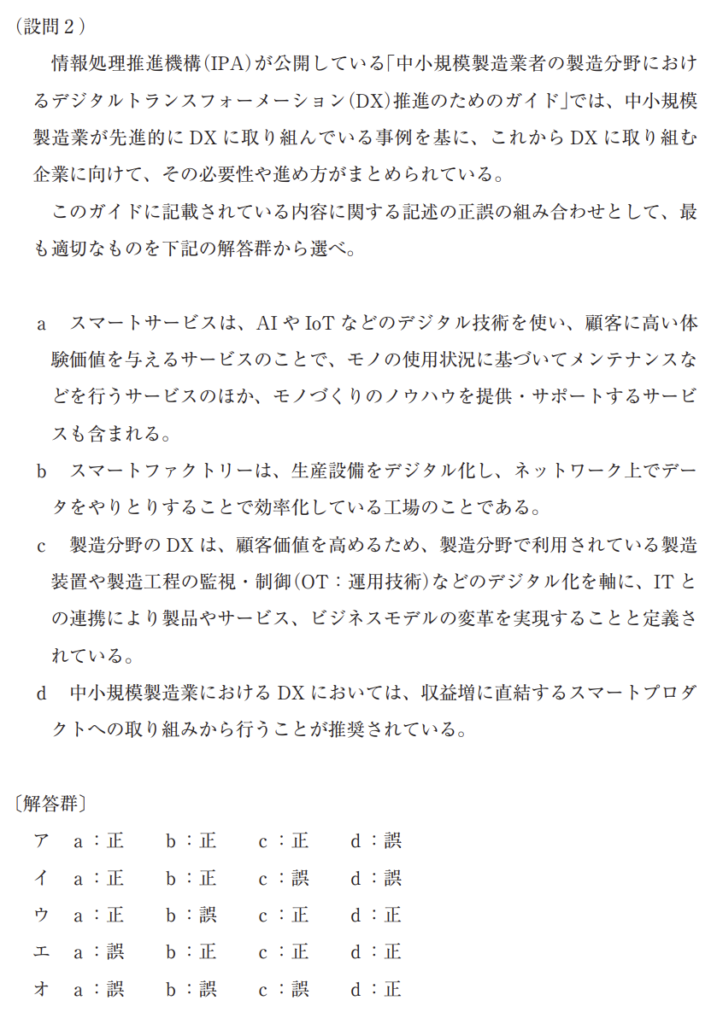 問8. 中小企業におけるDX実現のための技術活用に関する記述として正しいものはどれか。