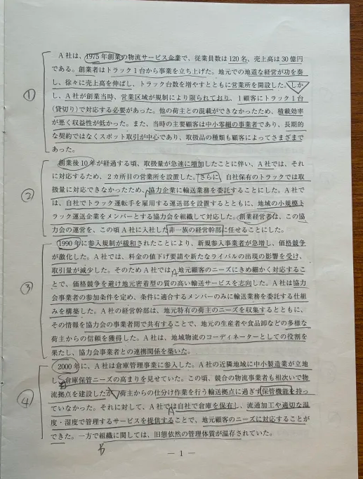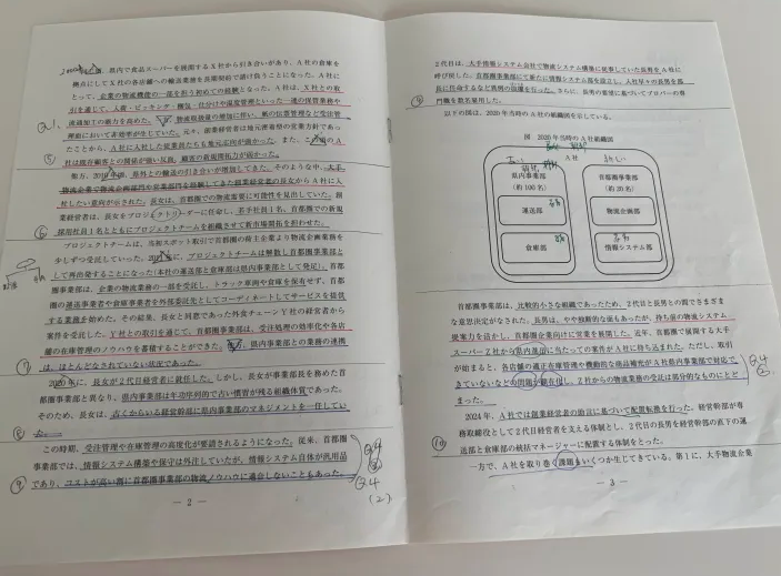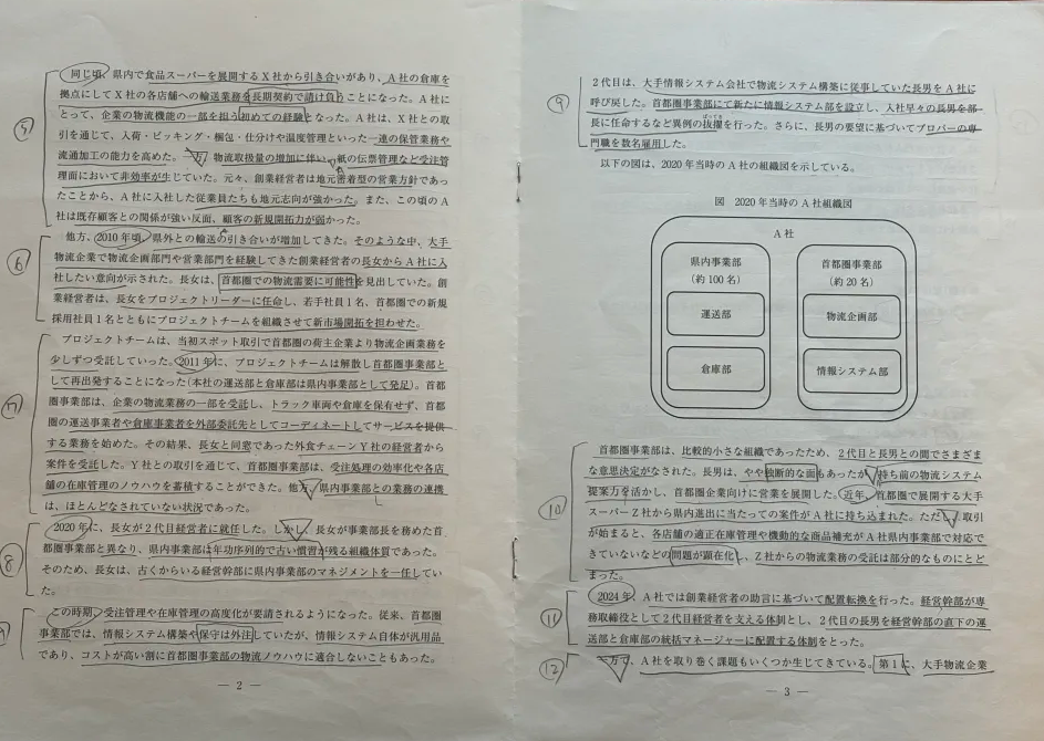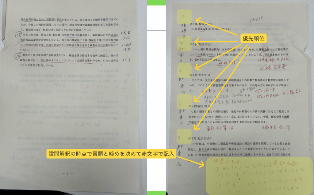 段落番号を振っていたり、シャーペン1本派で与件文に満遍なく、でも規則的なマーキングがされていることが分かりますね!