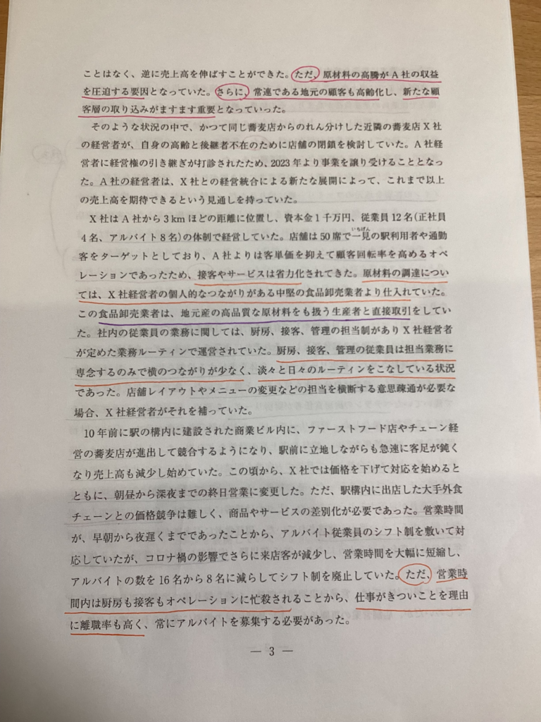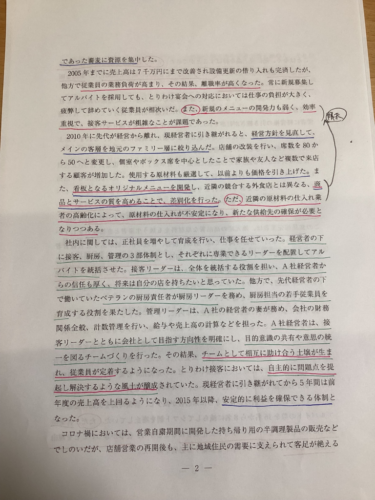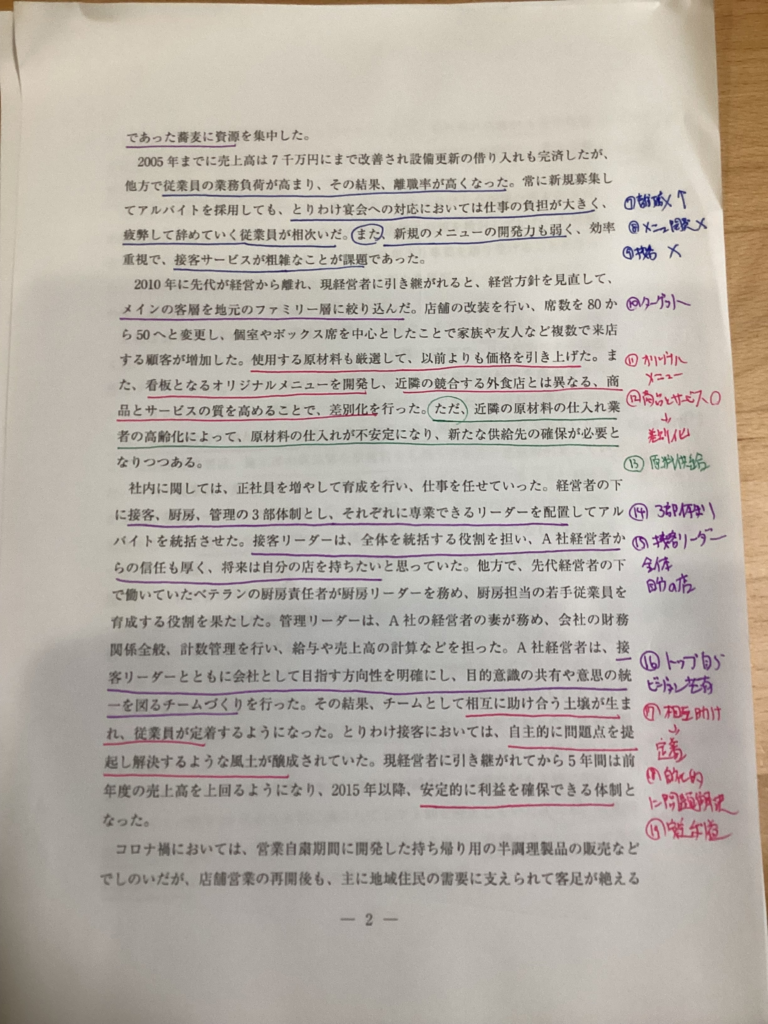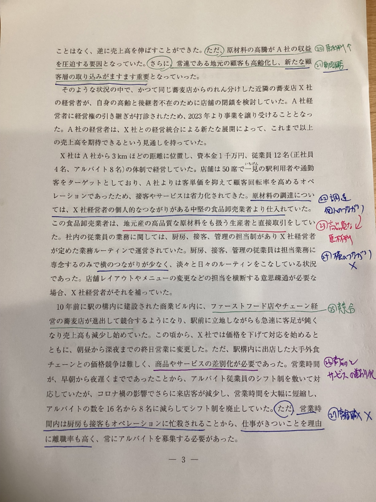 設問文と与件にマーキングした箇所を繰り返し見ながら作成しています。