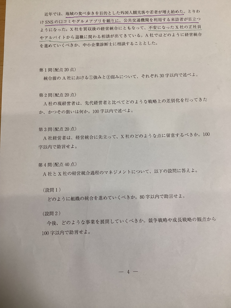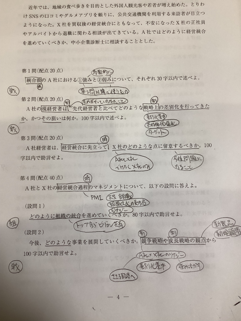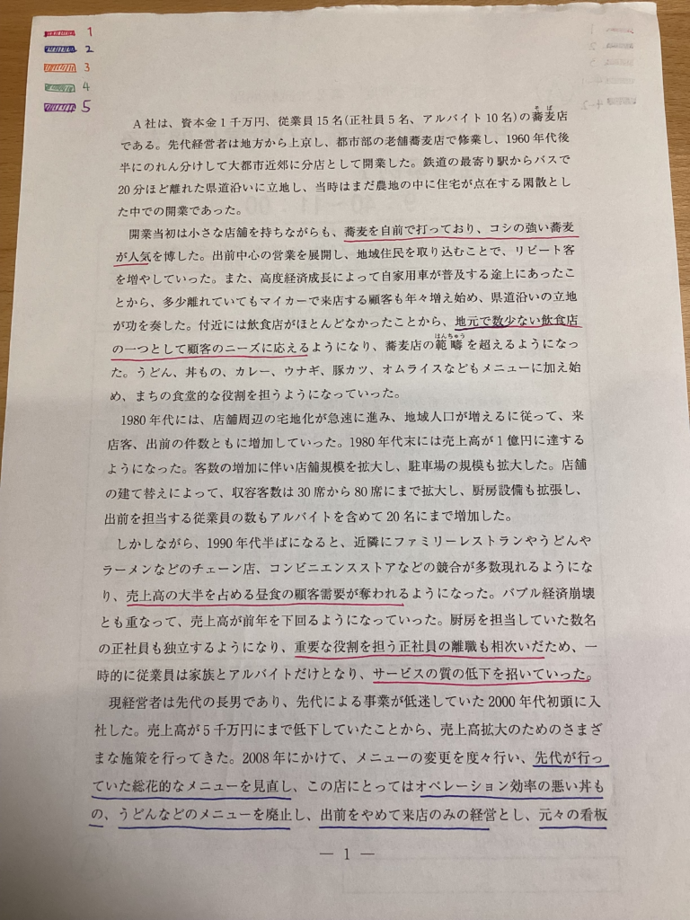 それで、令和5年事例Ⅰの与件文を使ってやってみます。