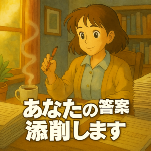 大御所の中小企業診断士の大先生(作問者)が事例企業のヒアリングを終えて、現場のレポート(与件文)をまとめ終えたところに、後輩の中小企業診断士であるあなた(受験生)が事務所にやってきました。