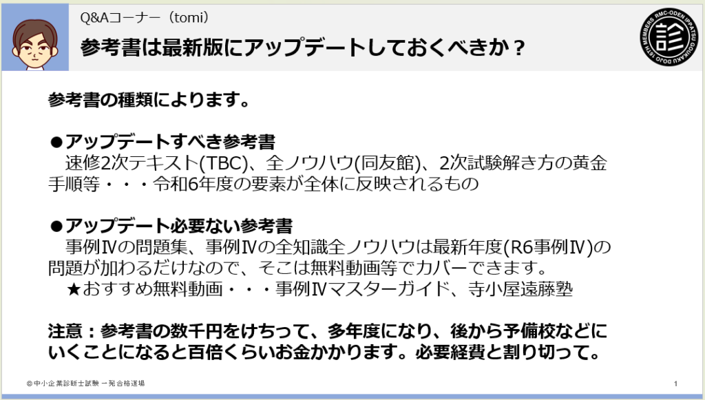2次試験リベンジ組です。過年度のテキストや問題集を持っているのですが、最新版にアップデートすべきでしょうか。
