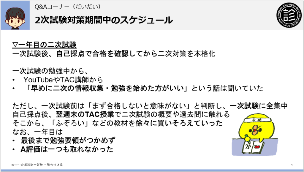 残念ながら参加が叶わなった…そんな方もご安心ください!ここからは2次試験対策に関するお悩みに16代目がガンガン答えていきます!