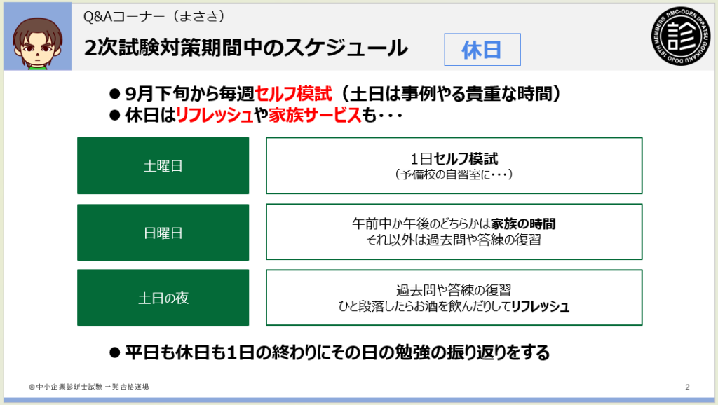 2次試験に向けた勉強のスケジュール、時間の使い方を教えてください!