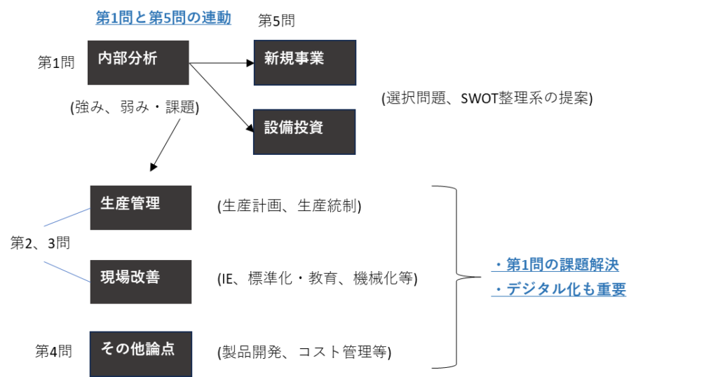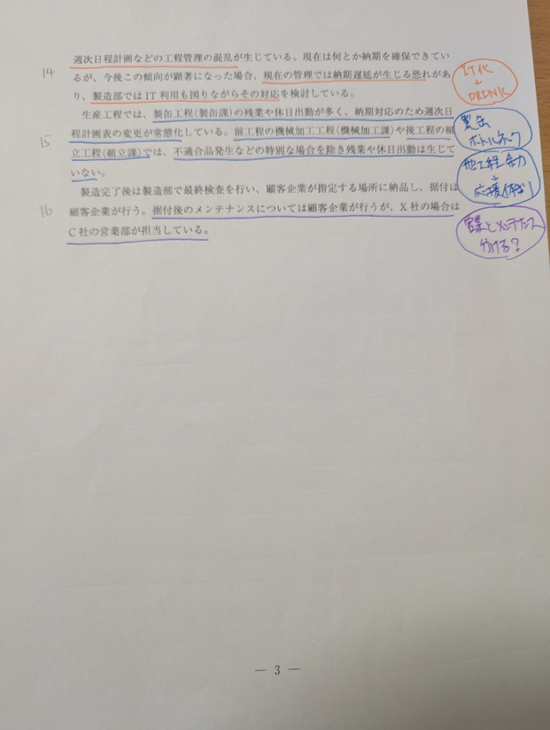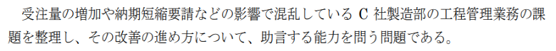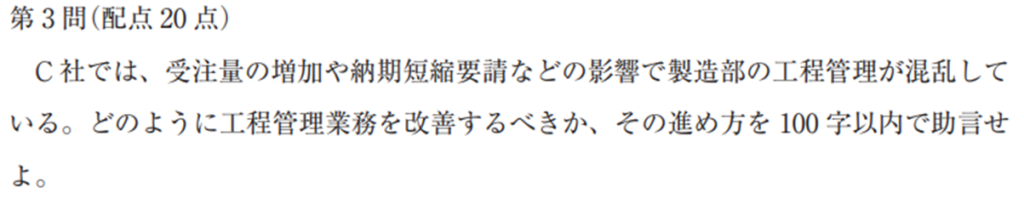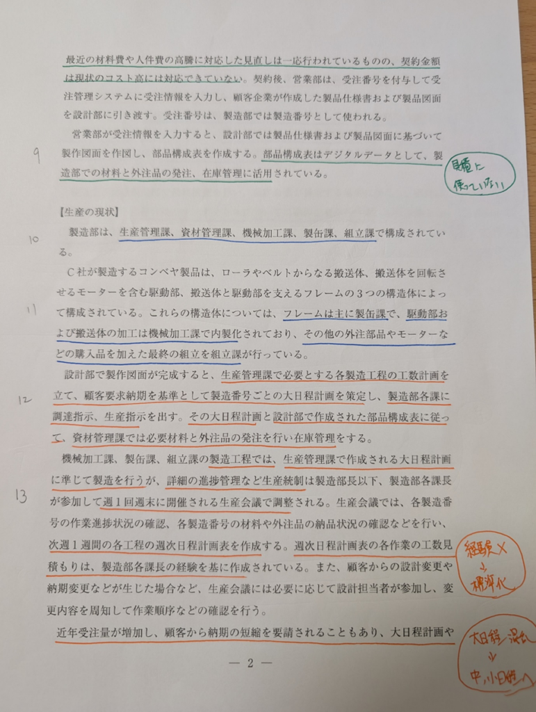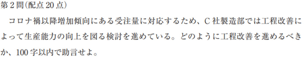 ただ、試験対策として生産管理に混乱があるなら「月次→週次の短サイクル化」「大日程→中日程の作成」といったシンプルな施策を書くのも有効だと今は感じています。文字数も少なく済みます。