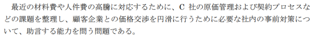 ただし、与件文8段落目にある「過去の契約金額を参考に見積算出」という点では、人件費や材料費の高騰が反映されていません。