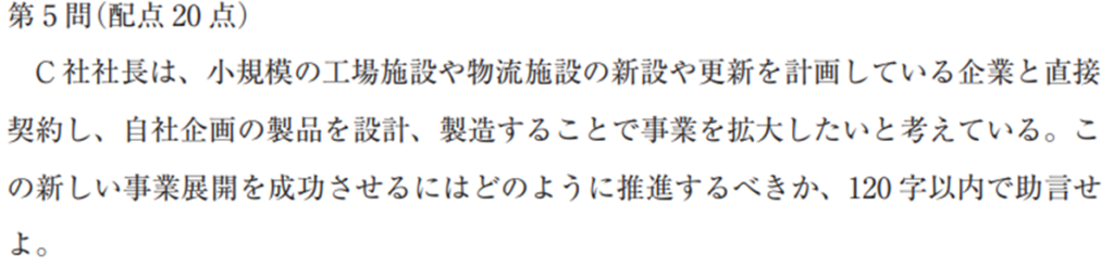 R6年度は「強みを活かす提案」が出題されましたが、2〜3年に1度は設備投資の選択問題も出ます。その際は「いただきマニュアル①」を参考に解答してください。