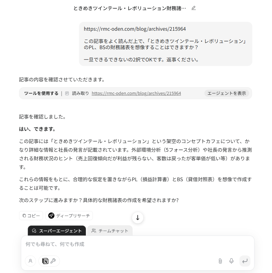 そこで今回、生成AI「GENSPARK」を使って、記事の中のtomi社長の発言から財務諸表(PLとBS)を作成する実験をしてみます!