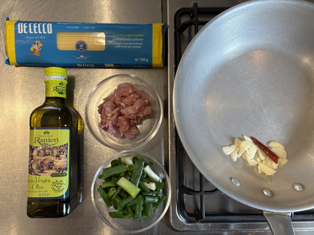 今回は僕の大好きな「鶏肉と青ネギのペペロンチーノ」の作り方をご説明します!