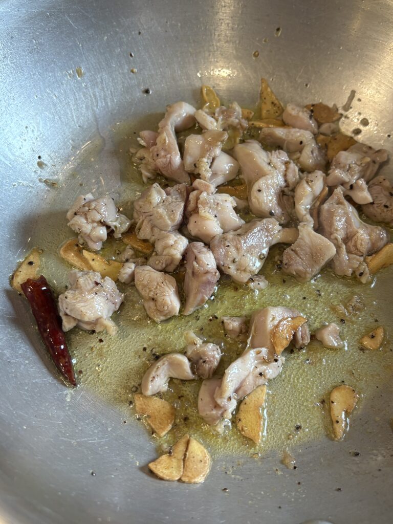 鶏肉を入れるまでのレシピは基本的なオイルパスタと共通なので、お好みで色々な具材を試してくださいね。