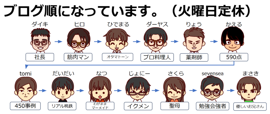 道場ブログは有益な情報の宝庫です!私たち16代目メンバーもこの道場ブログから多くの知識を得て合格することができました。ぜひみなさんも記事を読み漁って、自分に合う勉強方法や考え方を見つけてみてください!