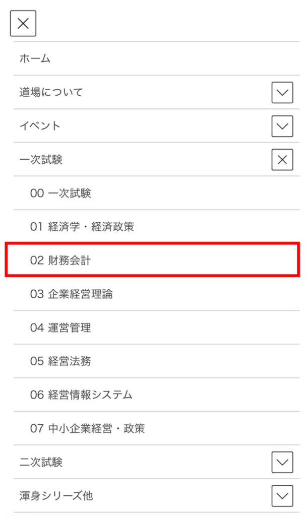 例えば、1次試験の財務会計に関する記事を見たい場合、「1次試験」のタブを開くと、財務会計の記事だけを探すこともできます☆