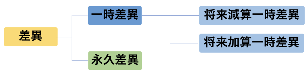 そして、一時差異の中に将来減算一時差異と将来加算一時差異があります。図で示すと下のような分類です。
