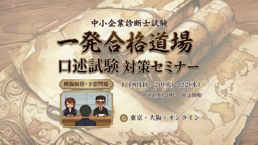 道場では本日20時より、口述試験に向けた模擬面接セミナーの募集を開始します。