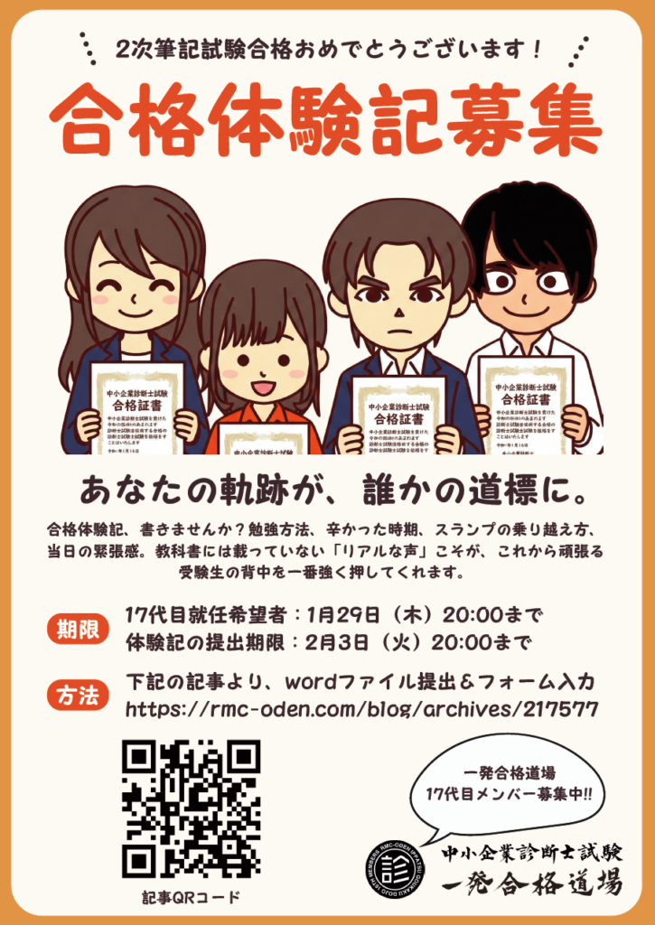 ↓受験体験記提出&17代目立候補はこちらから!