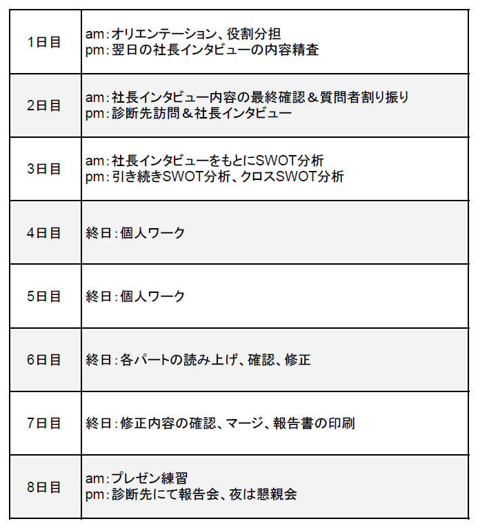 午前中は実習先で、一度だけプレゼンの練習をし、診断先企業へ向かいます。