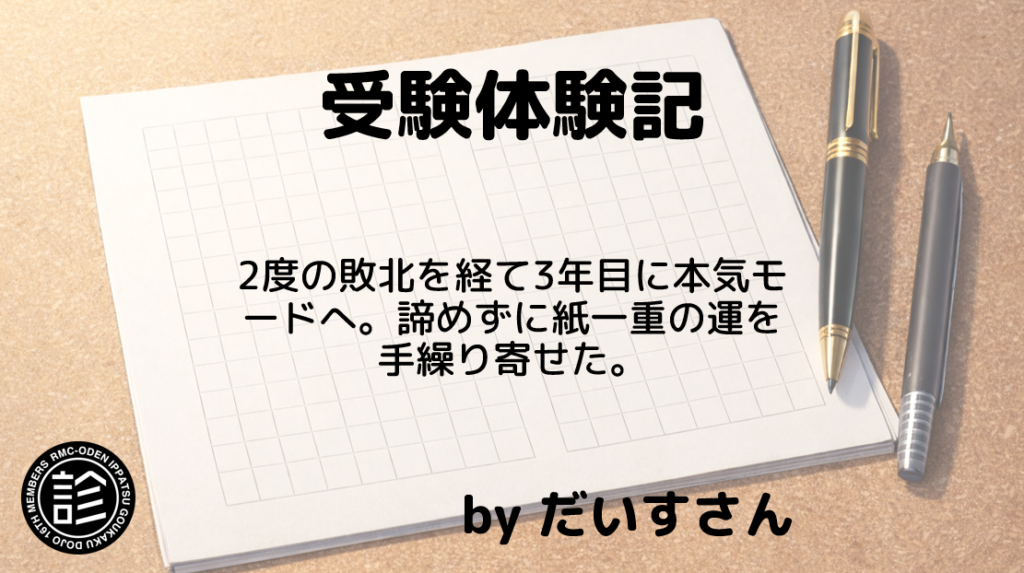 【合格体験記】 2度の敗北を経て3年目に本気モードへ。諦めずに紙一重の運を手繰り寄せた。 by だいすさん