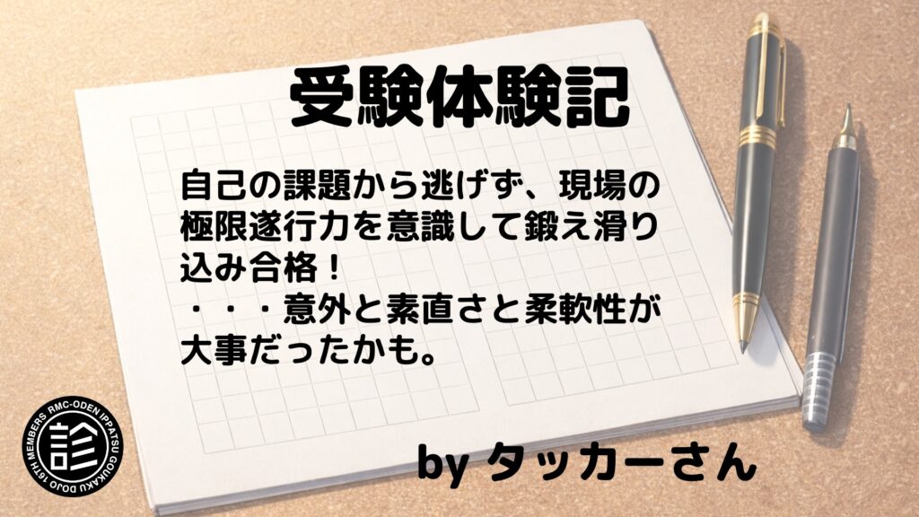 【合格体験記】自己の課題から逃げず、現場の極限遂行力を意識して鍛え滑り込み合格!・・・意外と素直さと柔軟性が大事だったかも。by タッカーさん