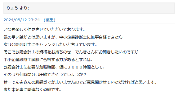 当時会計士を持つ15代目せーでんきさんに以下のようなコメントをしたことがありました。