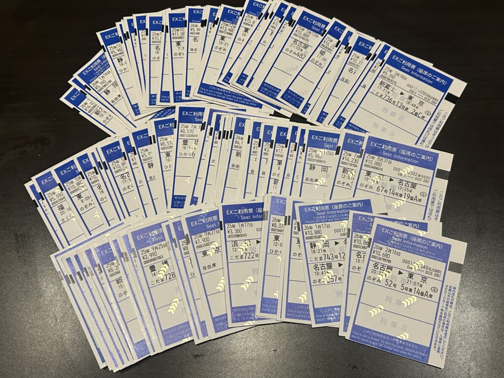 ちなみに、約1年分の東海道新幹線の利用票を捨てずに持っていました👇
