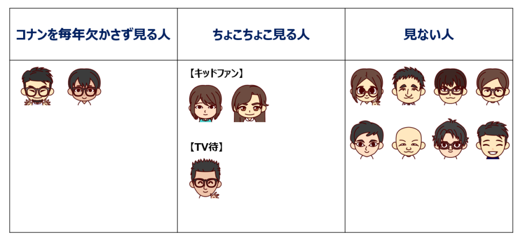 ということで、今回は毎年「劇場版名探偵コナン」を見る17代目メンバーを調査しました。