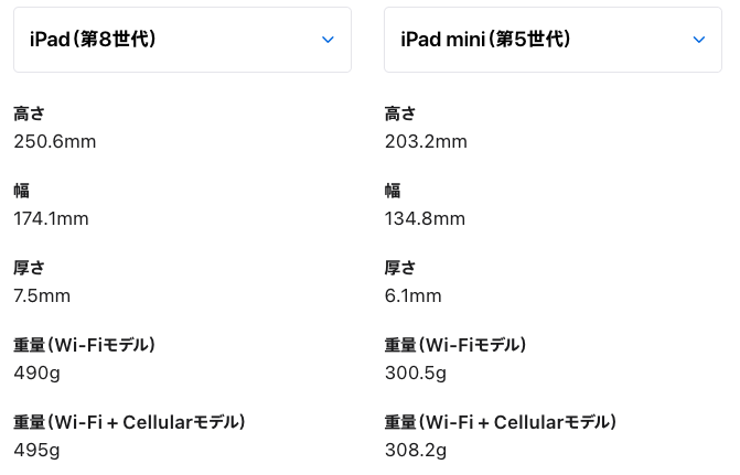 以前からiPadを持ってまして、iPadの第8世代を使ってました。一応、Apple Pencilも使えるんだけど、電車で片手で持って勉強するにはちょっと重いし、ストレージも32GBでちょっと心許ない気がする。ここはiPad miniにするしかないのでは、だって軽いし、ってことで、iPad miniに惹かれていきます(単に欲しいだけ)。