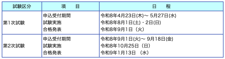 もう、わかっとるわい、という人が多いと思いますが、今年の試験日程は以下のようになってます。