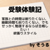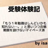 2026/02/15 / 最終更新日 : 2026/02/08 なつ 合格体験記・未合格体験記 【合格体験記】 2次試験で沼にはまった受験生 by miyaさん 2次試験に複数回チャレンジされる中でご自身の戦略をしっかりと立て、見事に実行されたmiyaさんの合格体験記です!