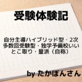 2026/02/06 / 最終更新日 : 2026/02/05 ダイキ 合格体験記・未合格体験記 【合格体験記】自分主導ハイブリッド型・2次多数回受験型・独学予備校いいとこ取り・量派(自称) by たかぼんさん 本日の体験記3人目はたかぼんさんです。2次試験を5回受験された経験を背景に、ご自身の思いを書き連ねていただいてます!