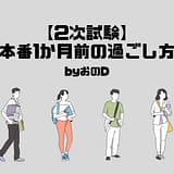 2023/09/30 / 最終更新日 : 2023/10/15 おのD 10 二次試験 【2次試験】本番1か月前の過ごし方 by おのD いよいよ9月が終わります。2次試験本番まで残り1か月。14代目のメンバーの経験をもとに残りの期間ですべきことをお話します。